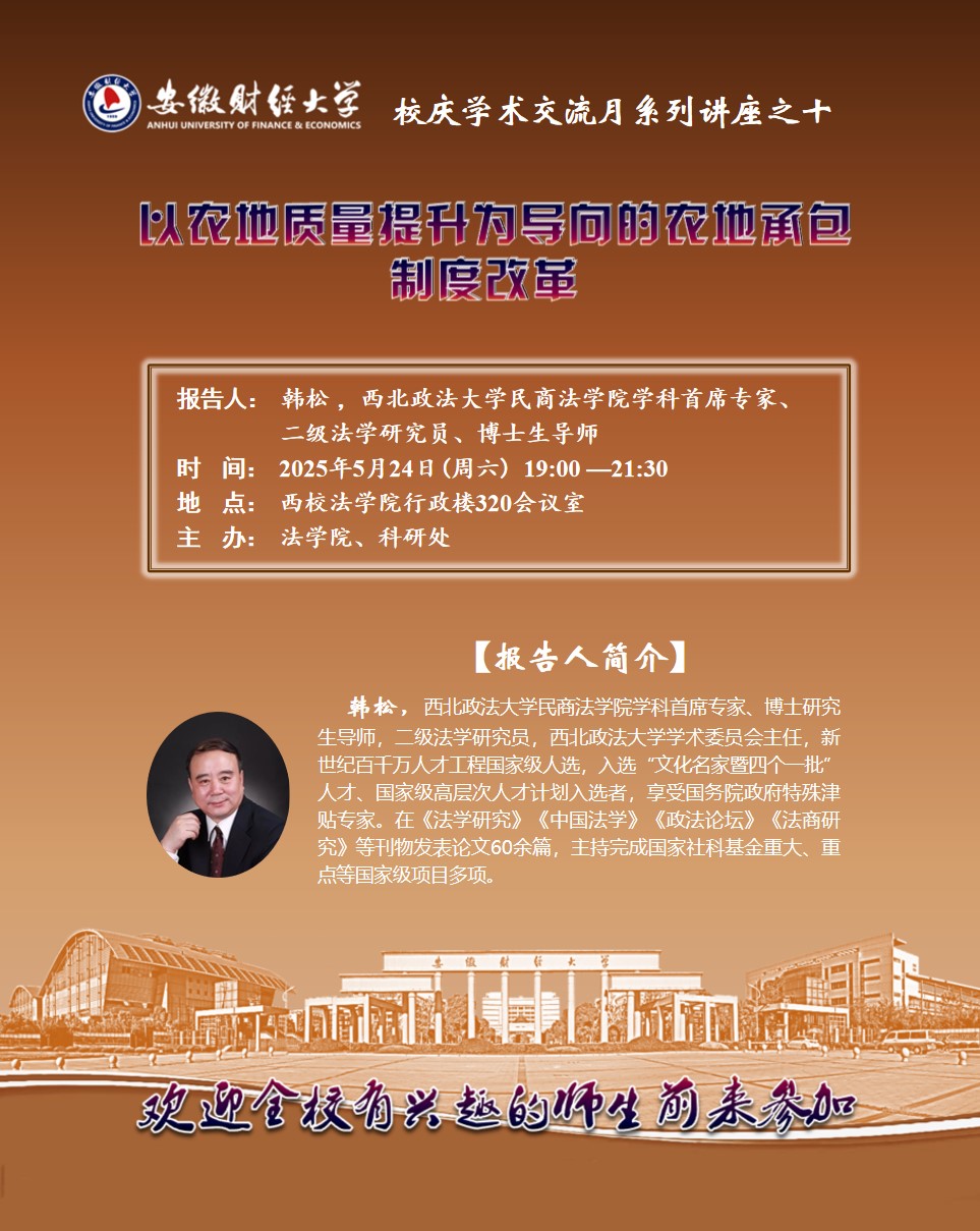 2025年5月24日:【校庆学术交流月系列讲座之十】以农地质量提升为导向的农地承包制度改革