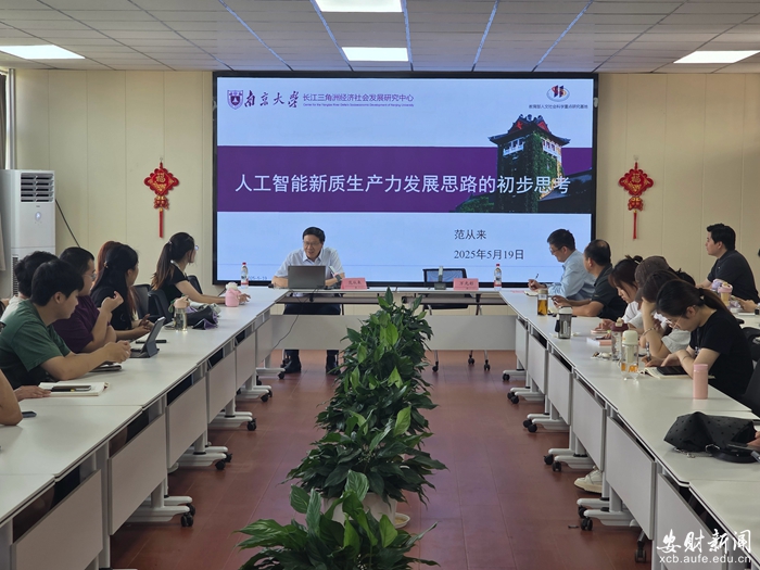 5月19日下午,“大千讲堂”第六十九讲在龙湖东校区博文楼606会议室开讲,国家级高层次人才、南京大学长江三角洲经济社会发展研究中心主任范从来教授作题为“人工智能新质生产力发展思路的初步思考”的专题报告。报告会由金融学院院长万光彩教授主持,各学院师生共同聆听了报告。
