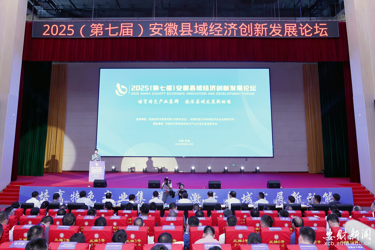 8月16日,2025(第七届)安徽县域经济创新发展论坛在阜阳界首市举办。安徽省政府发展研究中心党组成员、副主任凌宏彬,阜阳市政府党组成员、副市长郑久坤,新利18官方彩票党委常委、副校长王兵,新利18官方彩票原党委常委、副校长周加来,来自中国社会科学院、上海财经大学、新利18官方彩票等专家学者,省市县相关领导,省内外商协会会长、秘书长和企业家代表等参加会议。